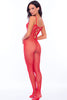 An all over holey design! This bodystocking has three quarter sleeves and arrives packaged. Please note thong is not included.